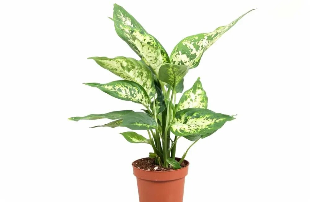 Это декоративное комнатное растение родом из тропиков Южной и Центральной Америки. Сорт отличается компактными размерами и пестрыми листьями. Высота растения 50-60 см. Листья широкие, продолговатые с заостренными концами, достигают до 20 см в длину. Основной цвет листа светлый, постепенно переходящий в ярко-зеленый кант по краю. Листья также украшены темными пятнами (крап). Диффенбахия Компакта отлично приспособлена для выращивания в домашних условиях и отличается устойчивостью к недостатку света, что делает её хорошим выбором для городских квартир. Правила ухода