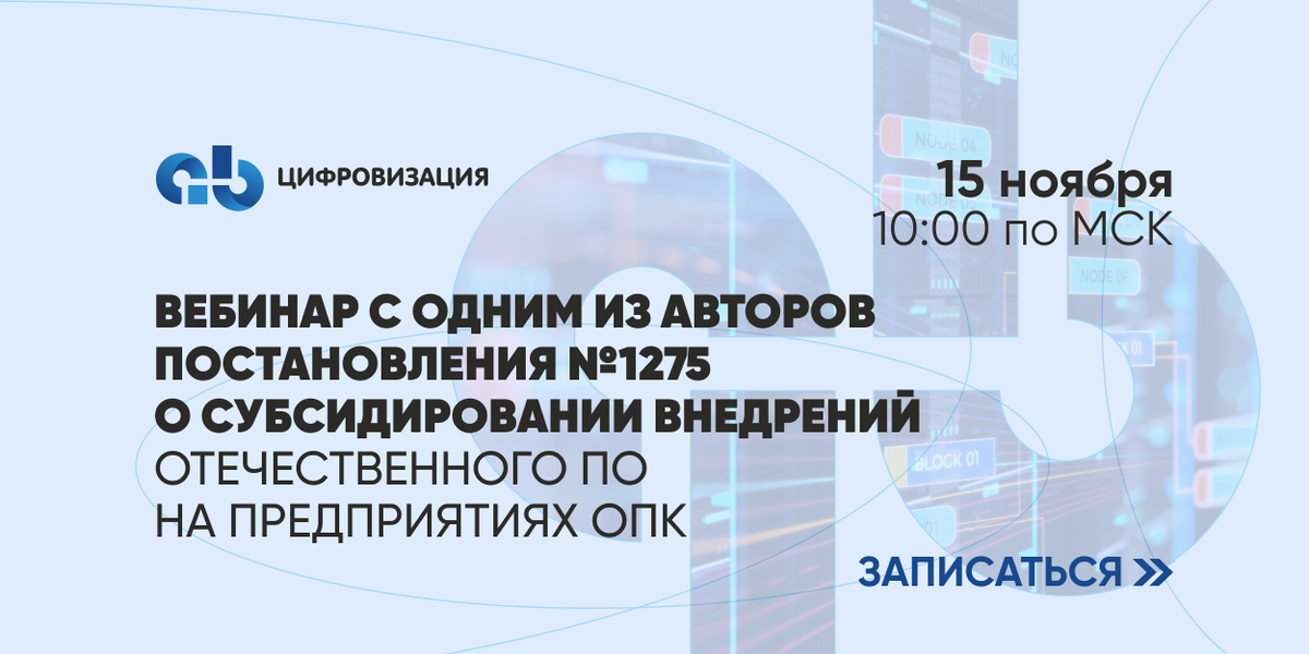 Вебинар с одним из авторов Постановления №1275 о субсидировании внедрений отечественного ПО на предприятиях ОПК
