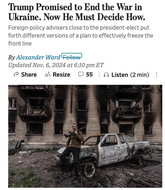 The Wall Street Journal в своей свежей публикации справедлмиво отмечает: Трамп обещал прекратить войну на Украине и теперь он должен решить, как именно это сделать.