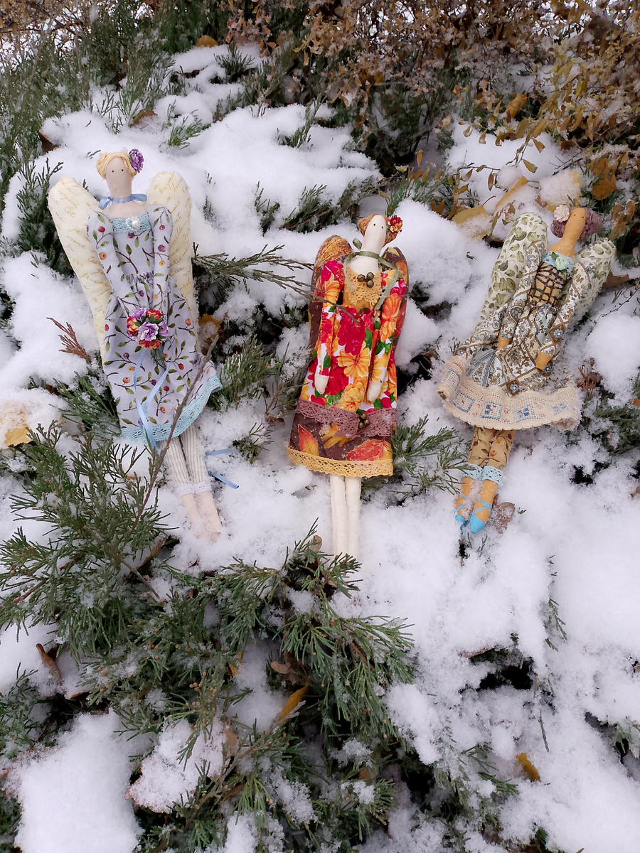 Здравствуйте, друзья-кукольники)))) Долго я думала, кого ставить куклой ноября. Из трёх моих винилово- пластиковых девиц не готов никто. Японка уже выступала. Новогодний десант: как-то рано... Решила , что это будет Тильда, как явление. Посвящать статью одной тильде смысла нет, так как артикуляция у них хуже, чем у дубовых барби. Взяла я всех своих тильдочек- винтажных ангелов и зимних ангелов на коньках. Снеговики пока остались дома до декабря. Их время ещё придёт. Девчонки очень удивились, за десять лет своей жизни они впервые увидели снег. Сейчас уже сидят дома и почти подсушили платья, а я выкладываю фоточки. #кукламесяца #кукланоября #тильда