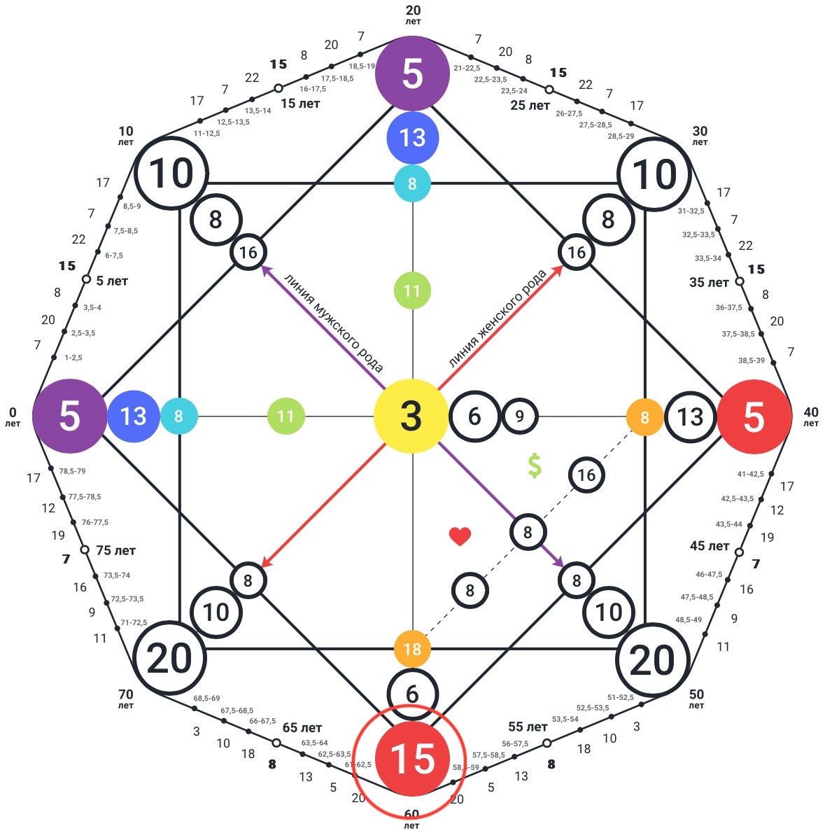 За это отвечает красная точка внизу матрицы. Как рассчитать? Нужно сложить день, месяц, год рождения