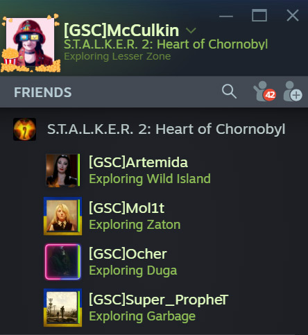 Твиттер-аккаунт, посвященный новостям STALKER 2 поделился любопытной мини-новостью в виде скриншота. На кадре представлен элемент интерфейса Steam одного из разработчиков из GSC Game World. Судя по этому кадру, как минимум 5 сотрудников студии проходили STALKER 2 на тот момент, когда был сделан скриншот. Это означает, что ПК-билд игры уже загружен в Steam и разработчики занимаются активным тестированием всего, до чего могут дотянуться руки. Но, что еще любопытно — в списке друзей, там где отмечено кто играет в STALKER 2, также указано, в каких локациях находятся игроки. Среди них: Все это вселяет надежду в то, что ПК-версия STALKER 2 будет достаточно отполированной, чтобы не повторить судьбу Cyberpunk 2077. Релиз STALKER 2 состоится уже 20 ноября на ПК и Xbox Series. Игра также получит инструментарий для моддинга, а, учитывая что она разработана на Unreal Engine 5, процесс модификации должен быть достаточно доступны. Комментарии на сайте