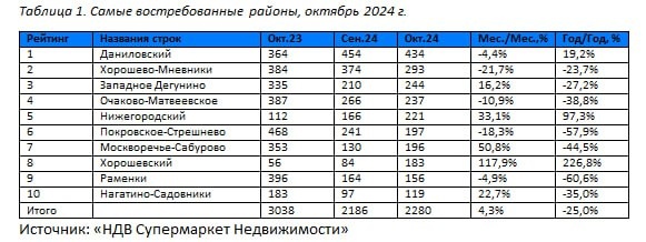 • Максимальное количество продаж приходится на Даниловский район (8,3% и 434 сделок), в котором в реализации находится 15 проектов, из которых входят в ТОП-10 самых востребованных проектов в октябре.