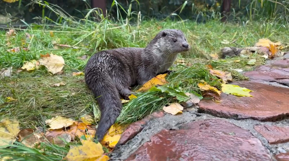 Ленинградский зоопарк показал, как выдра Мишель принимает водные процедуры