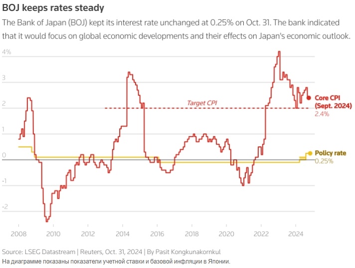 Премьер-министр Сигэру Исиба 2 октября удивил рынки заявлением о том, что экономика не готова к дальнейшему повышению ставок, но позже смягчил своё заявление, заявив, что не будет вмешиваться в политику Банка Японии.