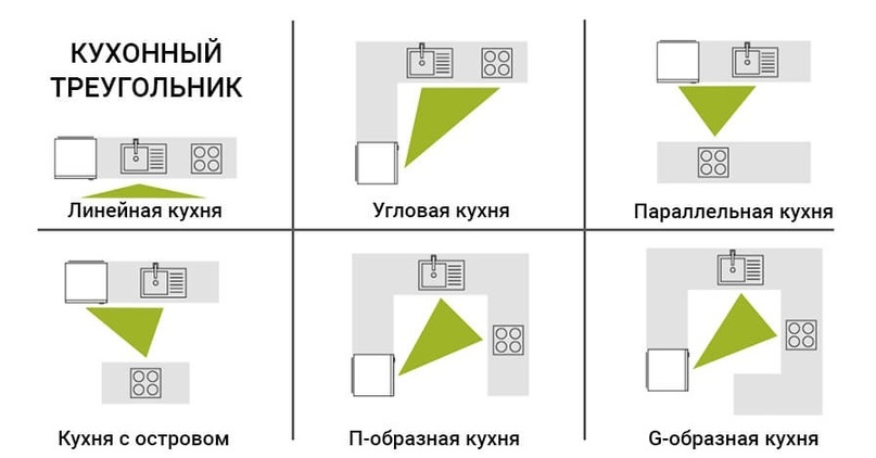 Выбирая кухню своей мечты, многие хозяйки думают о красоте, площади и бюджете. Они выбирают стильные фасады и различные технические новинки. Но будет ли такая кухня удобной и при этом функциональной? Давайте рассмотрим правильную эргономику кухонного гарнитура. Существует одно негласное правило. Основные рабочие зоны должны находиться в треугольнике. Сюда относят холодильник, мойку и плиту. Они отвечают за хранение, заготовку и приготовление пищи. Данные зоны должны умещаться в равносторонний треугольник. Расстояние между объектами должно составлять 1-1,5 метра. Подобный подход делает приготовление пищи комфортным и быстрым. Данное правило было выведено немцами около 100 лет назад. Для современных кухонь возможно создание зоны «рабочего параллелепипеда». Центральное место при этом может занимать остров на кухне. Базовые размеры выглядят следующим образом: ширина модулей – 30-80 см, глубина – 50-60 см, глубина верхних шкафов – 30 см, высота нижних модулей – 85-90 см, глубина самой столе
