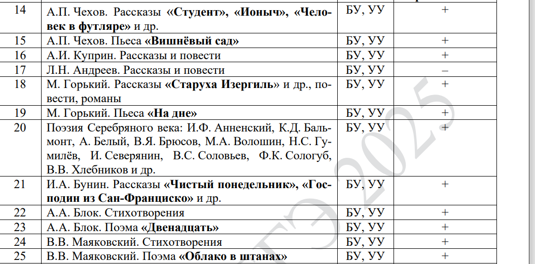 Это не означает, что нужно прочитать только выделенные произведения из кодификаторе, читать придется много, но это для вашего понимания, сажем так, навигатор подготовки.