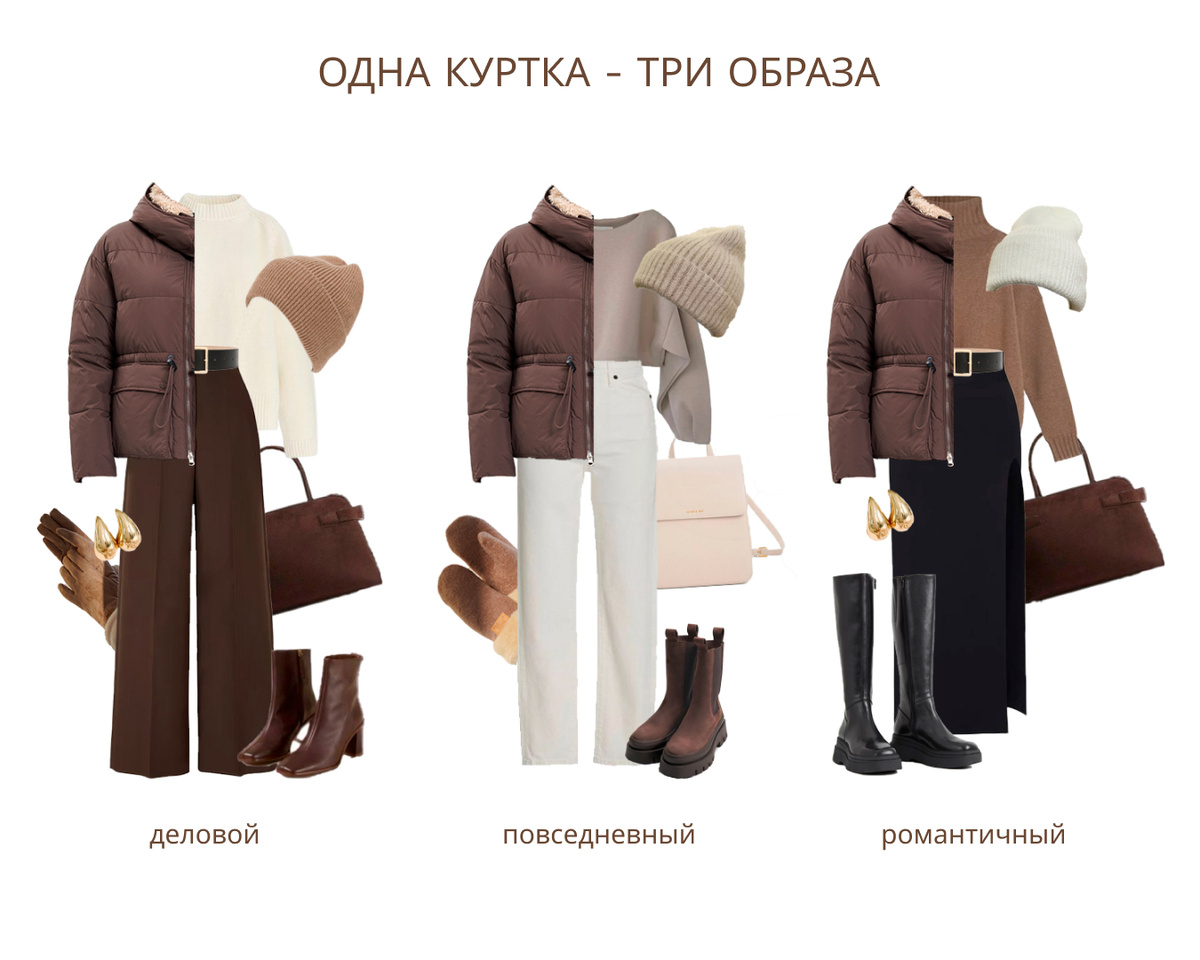 Сегодня мы поговорим об универсальной замене черного пуховика, а именно о коричневой куртке. Этот цвет подойдет абсолютно каждому и отлично впишется в ваш гардероб. Специально для вас мы собрали несколько образов, подходящих для самых разных случаев. Так с как же носить нашу коричневую куртку из новой коллекции? Для поездки на работу или учебу: В холодную пору для стильной леди может подойти теплый белый свитер и темно-коричневые брюки, а отличным акцентом может стать стильный ремень и объемные украшения золотого цвета. А чтобы не замерзнуть по пути на работу или учебу обязательно следует добавить бежевую шапку и светло-коричневые перчатки. Ссылки на модели из нашего магазина: Куртка: https://www.ohara.ru/catalog/dlya_zhenshchin/257015/
