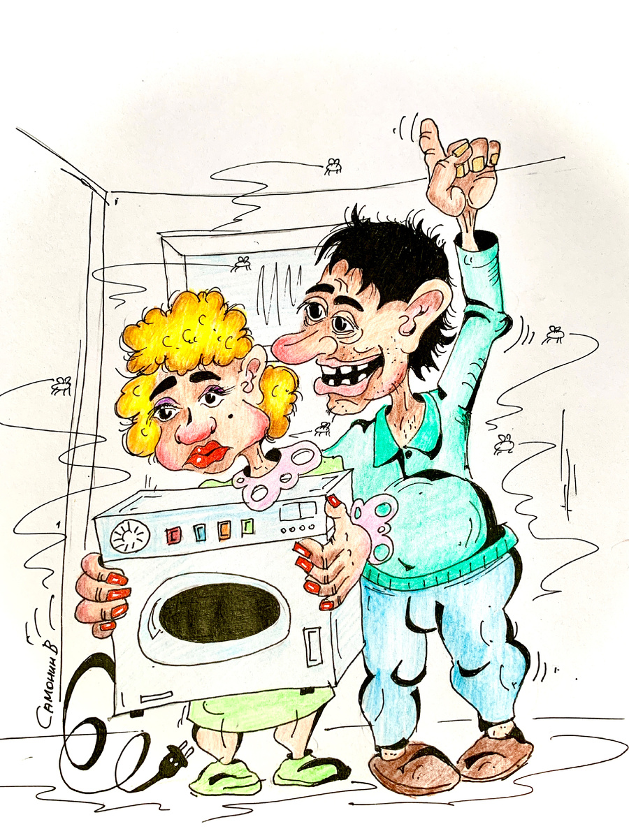Весь мокрый от пота, Степа тащил стиральную машину жены на спине несколько километров