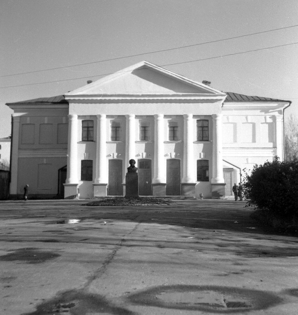 Здание бывшего Народного дома, в котором на момент съёмки в 1960-е размещался Драматический театр. Фасад здания на снимке вроде и похож на современный, но свой сегодняшний вид он получил в результате реконструкции конца 1970-х, после чего в 1980 году здесь уже обосновался ТЮЗ.
