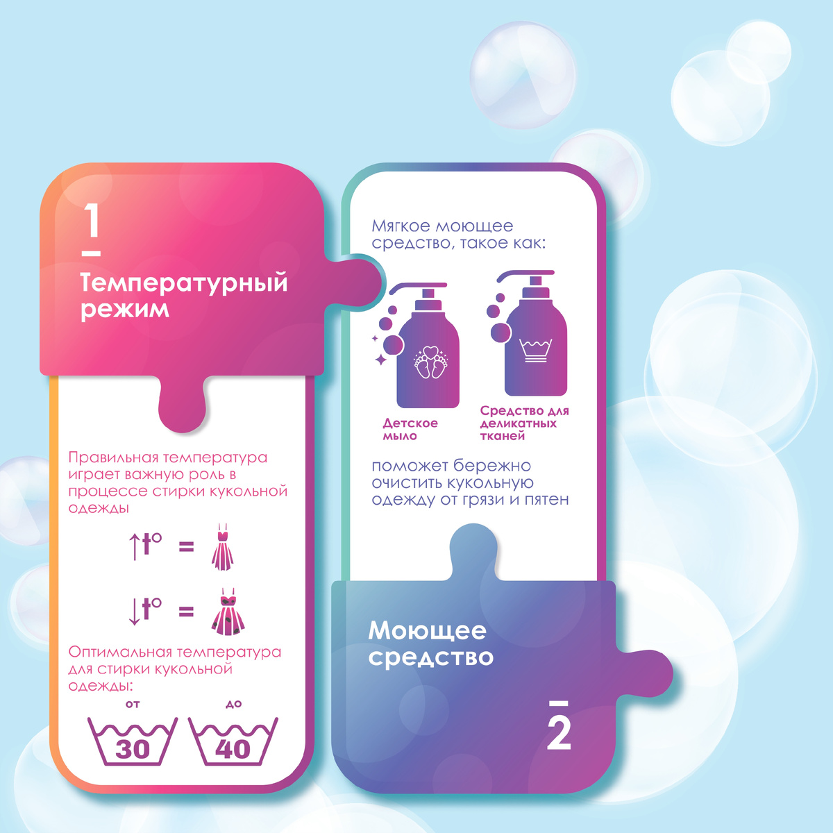 Если вы коллекционируете кукол или ваш ребёнок обожает в них играть, то, вероятно, вам приходилось стирать кукольную одежду. Многие родители и коллекционеры сталкиваются с проблемой сохранения качества и внешнего вида кукольных нарядов после стирки. Грамотный уход за кукольной одеждой может существенно продлить её срок службы и сохранить яркость и привлекательность каждого наряда. Правильная температура играет важную роль в процессе стирки кукольной одежды. Слишком высокая температура может вызвать сжатие или изменение формы ткани. Слишком низкая температура может не обеспечить полноценное удаление загрязнений. Оптимальная температура для стирки кукольной одежды от 30°С до 40°С. Это поможет не только очистить одежду, но и сохранить ее качество на долгое время. Мягкое моющее средство, такое как детское мыло или специальное моющее средство для деликатных тканей, поможет бережно очистить кукольную одежду от грязи и пятен. При использовании машинной стирки обратите внимание на режим: он до