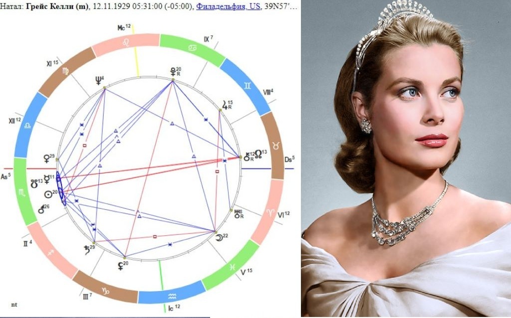 Грейс Солнцем и Марсом попадает в 6 дом служения, стресса и болезней Ренье, активируя указанные темы. Служение Монако – первостепенная цель Ренье, в достижении которой ему помогал брак с Грейс. О стрессах Ренье мы вряд ли что-то узнаем: это не та тема, о которой бы открыто рассказывала пресс служба княжеской читы.