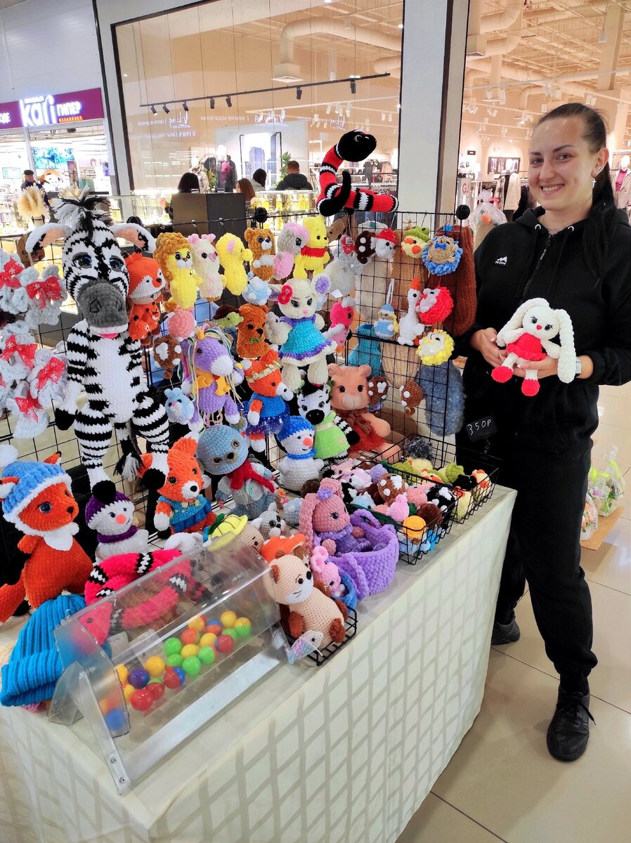 Ярмарка в ТРЦ Мармелад прошла неплохо, видео монтирую для вас☺️ Стол делила пополам с Олей @sovyaz ❤️ Сделала вывод, что я - лентяйка😅 надо вязать больше, многие покупатели не нашли свои "перламутровые пуговицы", а они были у меня в планах🧐 Так что работаем дальше💪