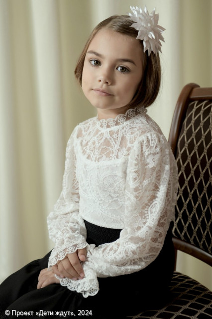 Знакомьтесь! Лизе 9 лет, очаровательная, жизнерадостная и нежная девочка. Она полна обаяния, красоты и естественности. Лиза внешне напоминает Дюймовочку из сказки - такая же маленькая, милая и добрая. Однако, Лизочка обладает сильным характером, четко понимает поставленные задачи, выполняет их, даже когда бывает трудно. Девочка может дать отпор обидчику, постоять за себя. В ответ на ласковое слово Лиза расцветает и отвечает взаимностью. Лизочка воспитанная и вежливая, легко идет на контакт и с детьми, и со взрослыми. Она очень исполнительная, все поручения выполнит вовремя и как положено, заметит свои и чужие ошибки и постарается их исправить. Может даже пожурить своих старших братьев и они ее обязательно послушаются. Лиза аккуратна и трудолюбива, с
