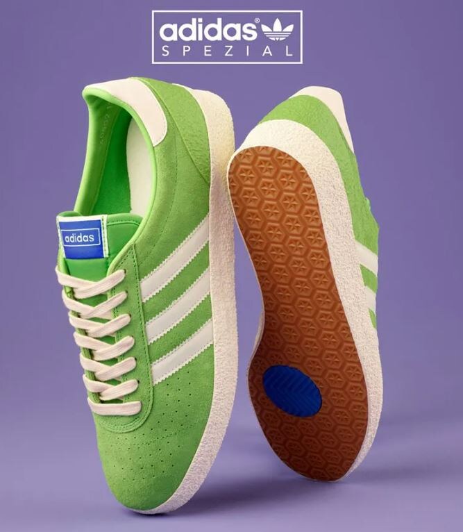 Честно, одна из моих любимых коллекций Spezial - это как раз ЗИМА2018 или "acid winter 2018" как её окрестили многие, т.к. она специально выходила к 30-летию рейв-движения Acid House, захлестнувшего в своё время всю Европу. И так, следующая модель этой коллекции - Munchen Super (две предыдущих мы обозревали ранее, смотрите ниже на канале). Это, так скажем, экспериментальная модель Мюнхенов и к своим классическим "братьям" из City Series не имеет никакого отношения. Аспден сказал, что данная модель основана на редких Газелях, производимых в 80-х годах. Не доверять ему, наверное нет смысла, но я таких Газелей без Т-образного мыска и вентилируемой носочной частью не встречал, скорее мне это напоминает легендарную японскую модель adidas 350. Мои мысли такие. В остальном здесь замшевый верх в цвете "Intense Green", белые Три Полоски и задник, а также, классическая для Газелей беловая резиновая подошва. Мягкие стельки из EVA с брендингом и фирменный брелок SPEZIAL завершают образ. Релиз - 7