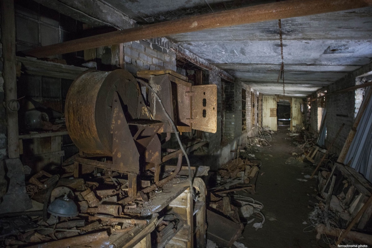Исследование этой обогатительной фабрики растянулось на несколько лет. В первой поездке удалось заглянуть в заброшенную котельную, технические помещения в полуобвалившемся здании и попасть в действующий рудник, а спустя долгих 3 года, вновь приехав на горно-добывающее предприятие, неожиданно для нас самих, забравшись в привлекательное своим покинутым видом здание, случайным образом мы обнаружили целую подземную лабораторию. Но, обо всём по порядку. Обогатительная фабрика расположилась в красивейшем горном районе, вполне себе действует, назвать заброшенной её невозможно, а вот угасающей вполне. Большая часть цехов и зданий используется по назначению, несколько же, в том числе и лабораторный корпус, заброшены. Оказавшись в первый раз на территории фабрики, пройдя насквозь через выработку с вагонетками, и, не зная с чего начать и куда пойти, я договорился с местным рабочим и по его разрешению прошёл через мастерскую в заброшенную часть длинной ветхой постройки. По бокам этой галереи встре