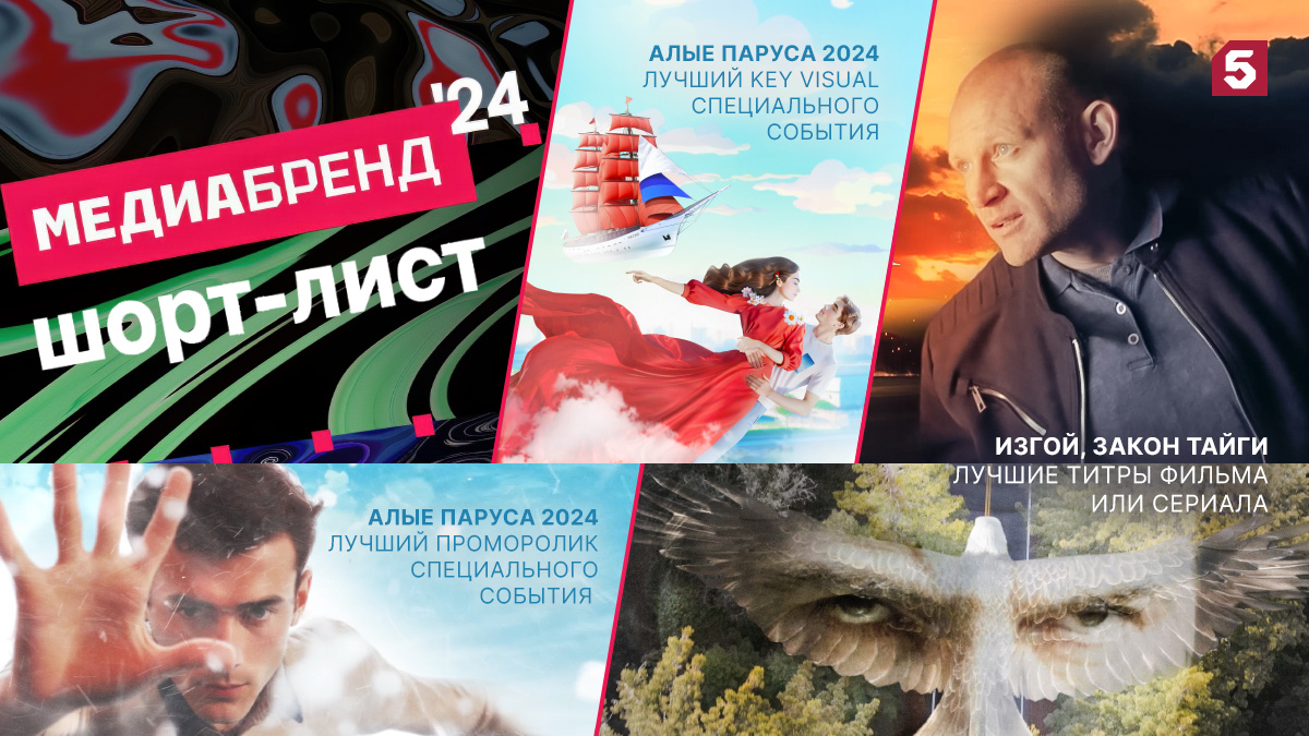 Четыре проекта Пятого канала в различных номинациях стали финалистами престижной индустриальной премии «МедиаБренд». Шорт-лист претендентов на победу опубликован на официальном сайте премии. В этом году все проекты заявлены в трех категориях: «Видео-промо», «Дизайн» и «Специальные номинации» в 48 номинациях. В номинации «Лучшие титры фильма или сериала» представлено сразу два детектива Пятого. «Изгой. Нечисть» с Андреем Фроловым в главной роли вышел на экран 3 марта 2024 года. Открывающие титры к сериалу заявляют «сказочную» составляющую фильма. Главные отрицательные персонажи боевика своими прозвищами и характерами напоминают злодеев сказок, знакомых каждому с детства: Яга, Кощей, Лихо. Доля проекта составила 9,2% в аудитории «Все 25-59», а это первое место федерального эфира. В сериале «Закон тайги» главную роль полковника контрразведки Николая Устюжанина исполнил Александр Дьяченко. Открывающие титры к сериалу «Закон тайги» передают главный его сеттинг - лес, который таит в себе тай