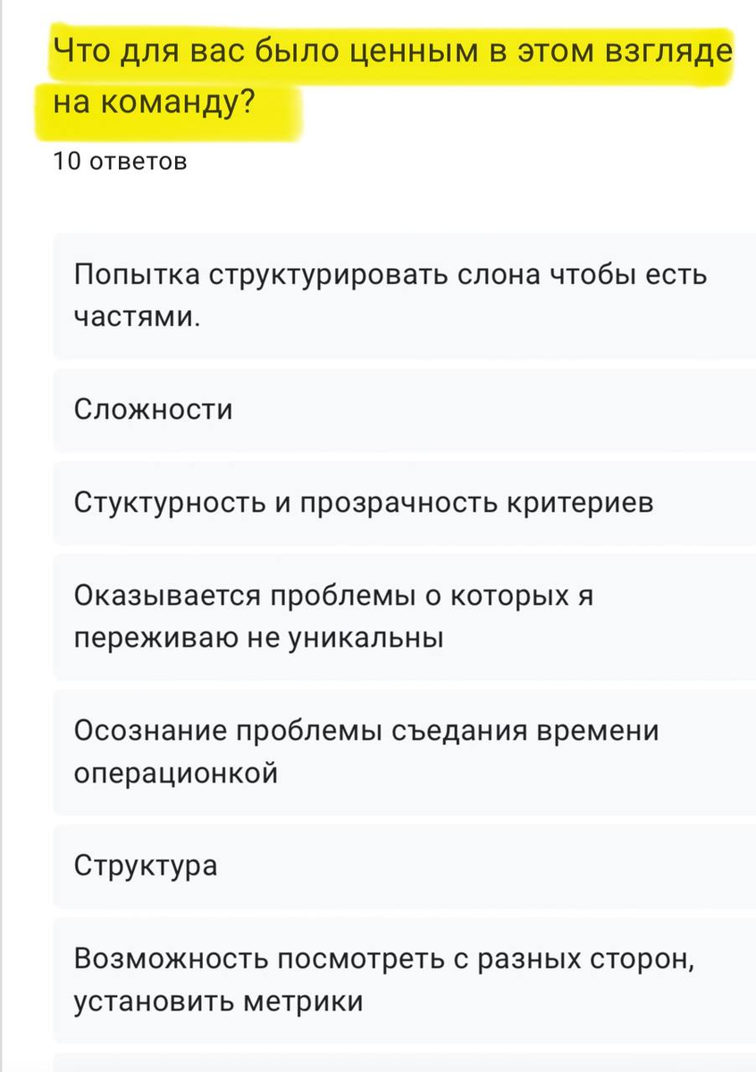 Пока весь мир следит за подсчетом голосов в США, у нас тут свое голосование – опрос про командное взаимодействие! И результаты куда важнее для нашего светлого будущего 😉 По предварительным данным экзитполов (ну ладно, просто полов), главная метрика, необходимая руководителям для организации командного взаимодействия – наличие в команде общих приоритетов для формирования личных планов. Командам нужна своя стратегия! Но ни слова о стратегических сессиях, ведь опрос продолжается. Если опрос пройдут 100 руководителей, обещаю поделиться результатами в этом канале. В чем польза? На картинке ответы руководителей о полезности опроса. Средняя оценка — 8 из 10, где 10 — максимальная польза. Обязательно пройдите опрос и перешлите его знакомым руководителям, чтобы они тоже увидели свою команду системно. P.S. Никакие русские хакеры в наше голосование не вмешиваются 😎