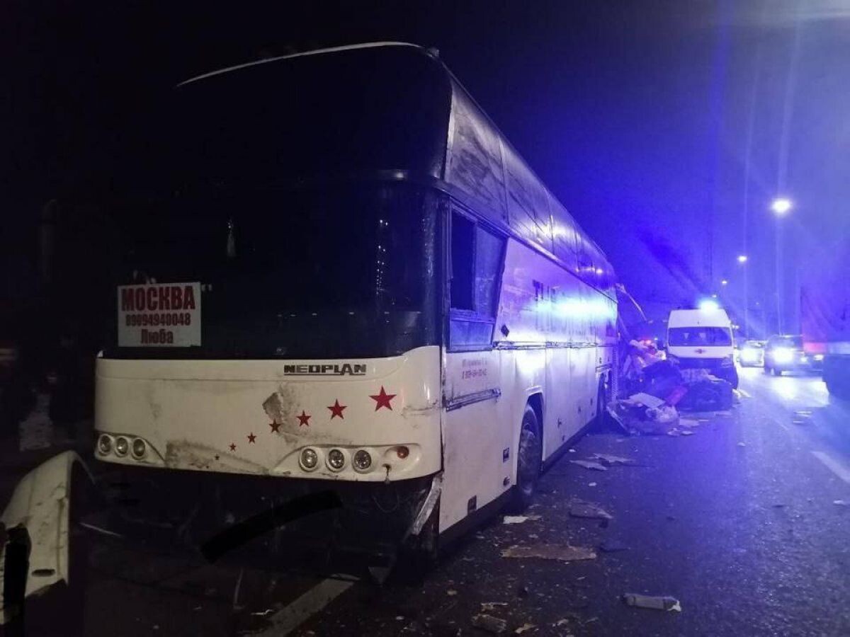 В результате аварии водитель и 56-летний пассажир «Неоплана», находившиеся рядом с автомобилем, получили травмы и были госпитализированы.