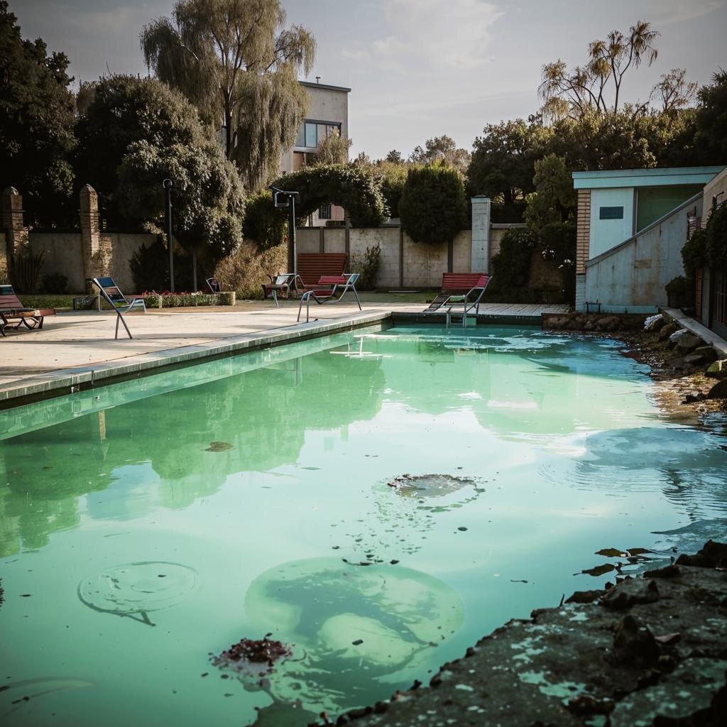4. **Чувство застоя или недостаток личного пространства**: Грязная вода в бассейне может символизировать застой в жизни или отсутствие развития. Женщина может чувствовать, что её жизнь или отношения зашли в тупик, и ей не удаётся достичь желаемых изменений. Это может быть связано с ощущением, что её потребности или желания не удовлетворяются, и она не может найти возможность для личного роста.
