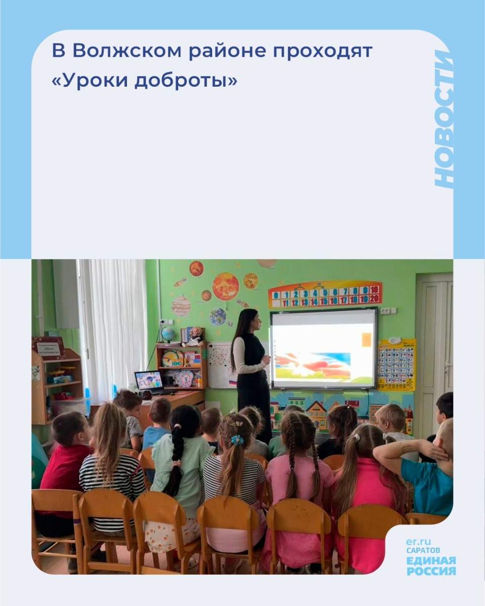 По инициативе регионального координатора партпроекта «Единая страна - доступная страна» депутата облдумы Евгения Ковалева и при участии местного координатора проекта Волжского отделения партии «Единая Россия» Вероники Петровой, «Урок доброты» прошел в Детском саду №33. Участниками мероприятия стали воспитанники подготовительной группы детского сада, для которых был организовано интерактивное мероприятие, в ходе которого Вероника Петрова рассказала малышам о людях, имеющих ограничения по здоровью. Основное внимание было уделено теме социализации инвалидов, а также упор был сделан на правильное восприятие особенных людей их окружением. Вся информация доносилась до ребят с использованием современных методических разработок, в игровой форме. «Несмотря на достаточно сложную для детского восприятия тему, ребята с удовольствием включились в ее обсуждение, задавали много вопросов, высказывали свое восприятия доброты, поддержки, дружбы, и пришли к выводу, что в жизни всегда надо помогать тем