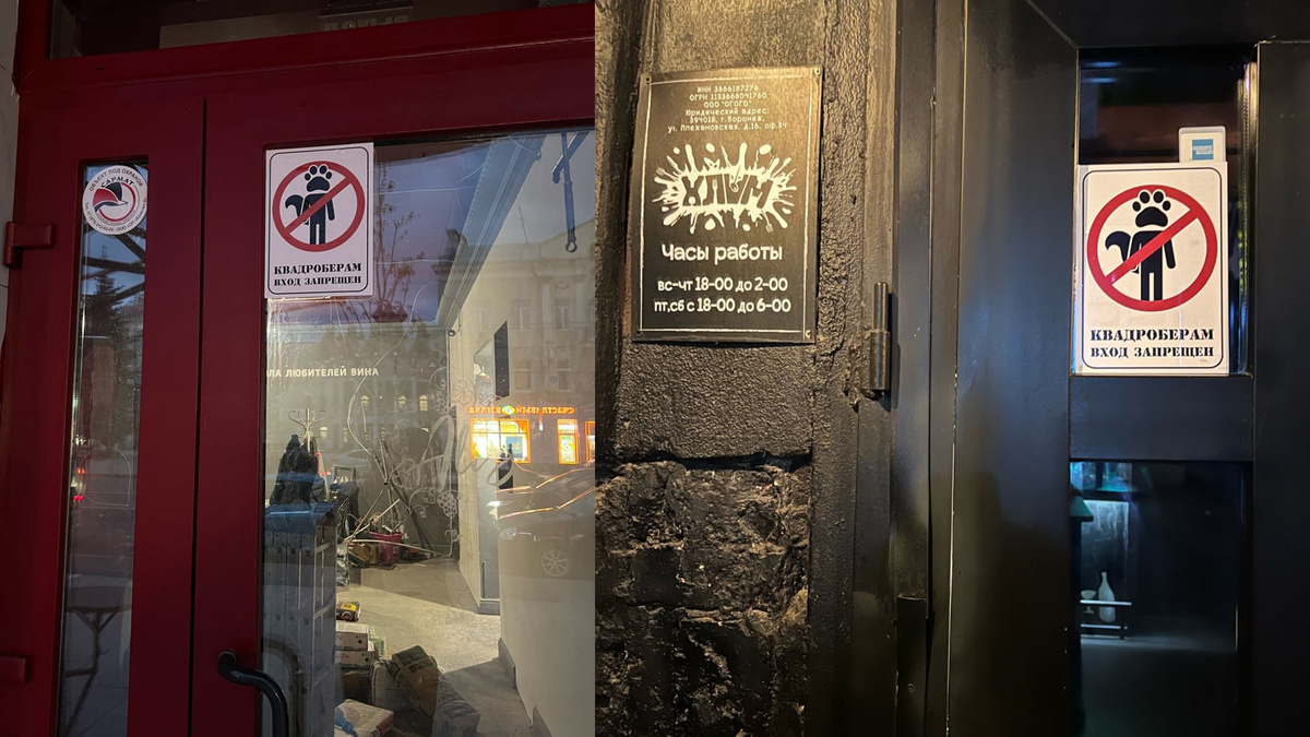 «Квадроберам вход запрещён» – такие наклейки стали появляться на дверях популярных воронежских заведений. Пока в Госдуме, Совете Федерации, РПЦ и «Лиге безопасного интернета» только обсуждают запрет квадробинга, в Воронеже перешли к делу – зайти в кафе с кошачьими ушками на голове уже не получится. За что отменяют детей, переодетых в животных, – разбираемся в материале. Квадроберам запретили входить в «Хлам», «Зюзякая», «Брат Азиат» и «Neo- рюмочная». Владелец заведений Михаил Меркулов объяснил, что считает квадробинг ненормальным явлением. Многие в детстве переодевались в костюмы по праздникам, надевали маски зайчиков на Новый год. Но отождествлять себя с животным – нельзя, уверен ресторатор. – Некоторые защищают квадроберов, но нужно отделять зёрна от плевел. Тут где-то и параллель, когда мальчик отождествляет себя девочкой, – уверен Меркулов. В качестве примера предприниматель привёл видео, которое недавно завирусилось в Сети: в московском заведении мама курит кальян, пока её дочь в