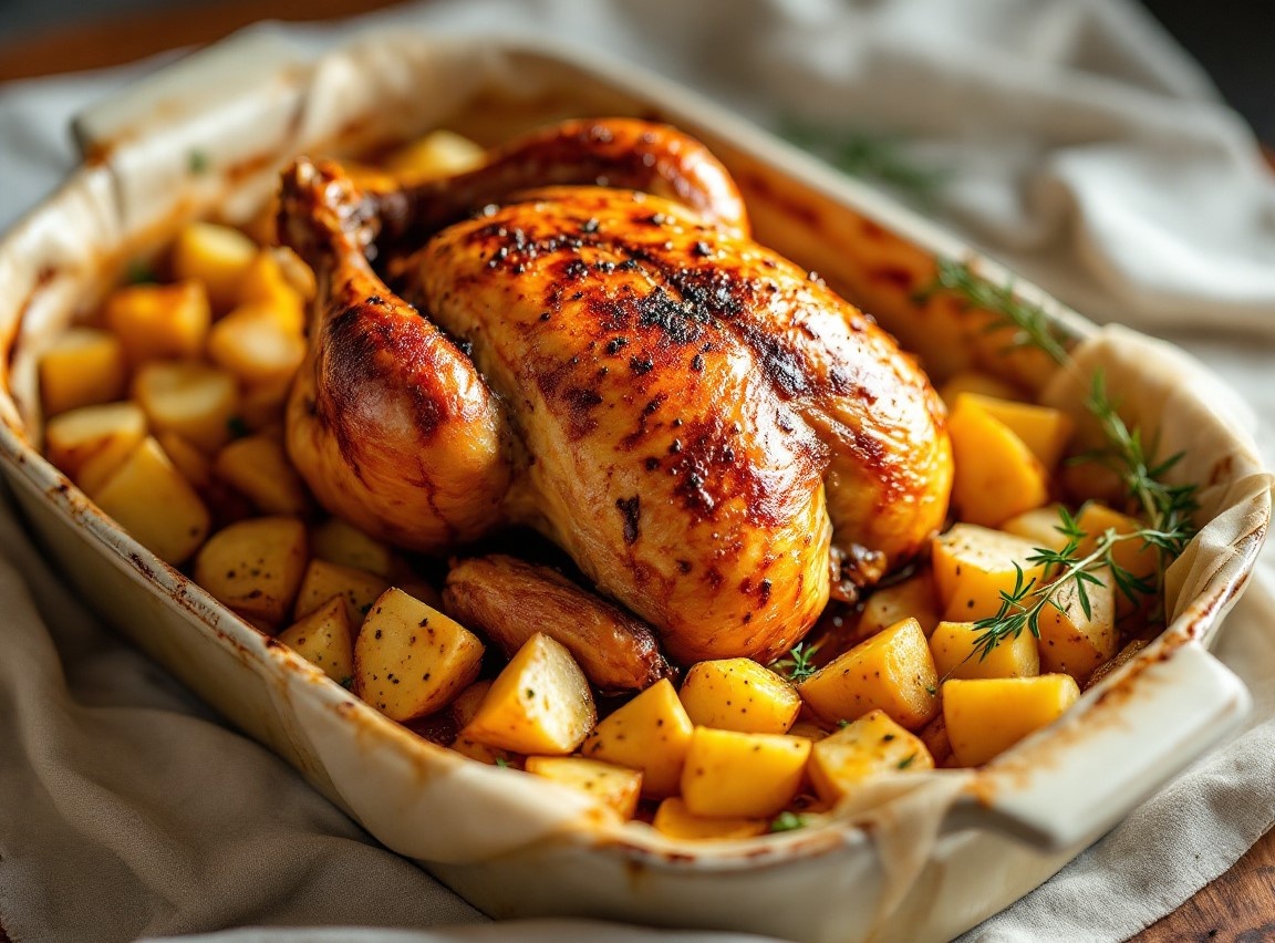 Курица запечённая с картофелем, — это вкусное и ароматное блюдо, идеально подходящее для семейного обеда или праздничного застолья. Предварительное маринование придаёт курице насыщенный вкус, а картофель пропитывается соками и специями, создавая аппетитное блюдо с минимальными усилиями. Курица целиком Картофель — 600-800 г Лук репчатый — 2 шт. Чеснок — 4 зубчика Оливковое или растительное масло — 4 ст. л. Лимон — 1 шт. Паприка — 1 ч. л. Сушёные травы (тимьян или орегано) — 1 ч. л. Соль — по вкусу Перец чёрный молотый — по вкусу Свежая петрушка — для украшения Соевый соус — 3 ст. л. Мед — 1 ст. л. Чеснок — 3 зубчика (измельчённые) Перец черный молотый — по вкусу Курица запечённая с картофелем готова. Приятного аппетита! Подписывайтесь на канал "Вкусно Очень" Данный рецепт на сайте👇