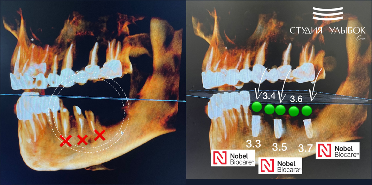 Кейс детальной имплантации. Пациент обратился с жалобой на перелом мостовидной конструкции снизу слева. Это протезирование 4-х летней давности, которое было произведено в другой клинике. После проведения диагностики и КЛКТ исследования мы увидели, что произошел перелом зубов: 33, 34, 35. Детальная имплантация Nobel (Швеция) была спланирована в цифровом протоколе и проводилась с помощью хирургического навигационного шаблона. Имплантаты были установлены по месту: 33, 35, 37. Зубы, которые расположены между установленными имплантами, 34 и 36, будут мостом будущей конструкции, которая будет иметь 3 опоры (это имплантаты) и 5 зубов (коронок). Операция по установке 3-х имплантатов Nobel Beocare была проведена очень точно и весьма успешно. Мы получили хорошую первичную стабильность. Дальнейший этап по протезированию, т.е. установки коронок на имплантаты спланирован по прохождению 3-х месяцев. Работа врача стоматолога-хирурга-имплантолога, Григория Эдуардовича Марванова. #имплантантынобель #с