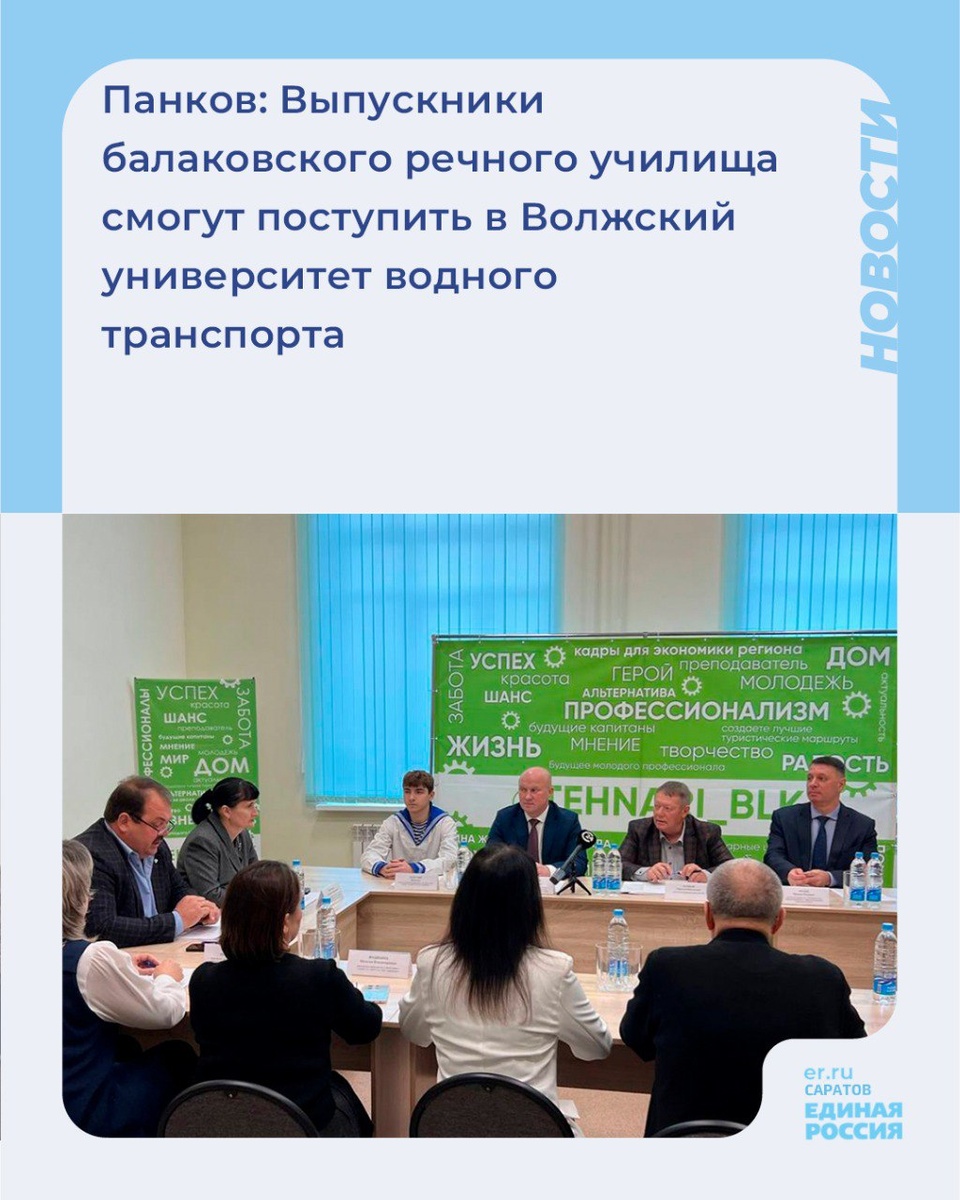 Сотрудники училища и университета уже прорабатывают удобный для студентов формат обучения. Экзамены будут проходить в Балаково. С будущего года в балаковском речном училище откроется приём в Волжский государственный университет водного транспорта, который находится в Нижнем Новгороде. Об этом рассказал депутат Госдумы Николай Панков в своем телеграм-канале «Пара слоV». «Здание балаковского речного училища стало украшением города. Все помнят, что ещё несколько лет назад оно было заброшенным. По проекту Вячеслава Володина оно получило вторую жизнь. В Балаково развиты речные традиции. Здесь много династий волжских речников. И сейчас по инициативе спикера в Балаково снова стали обучать судоводителей. Решения спикера Госдумы всегда имеют стратегическое значение. Сейчас ведётся работа по развитию пассажирских перевозок по Волге. Поэтому подготовка экипажей для судов очень актуальна. В частности, для «Валдаев», которые в следующем году поступят в область. Сегодня вместе с проректором Вол