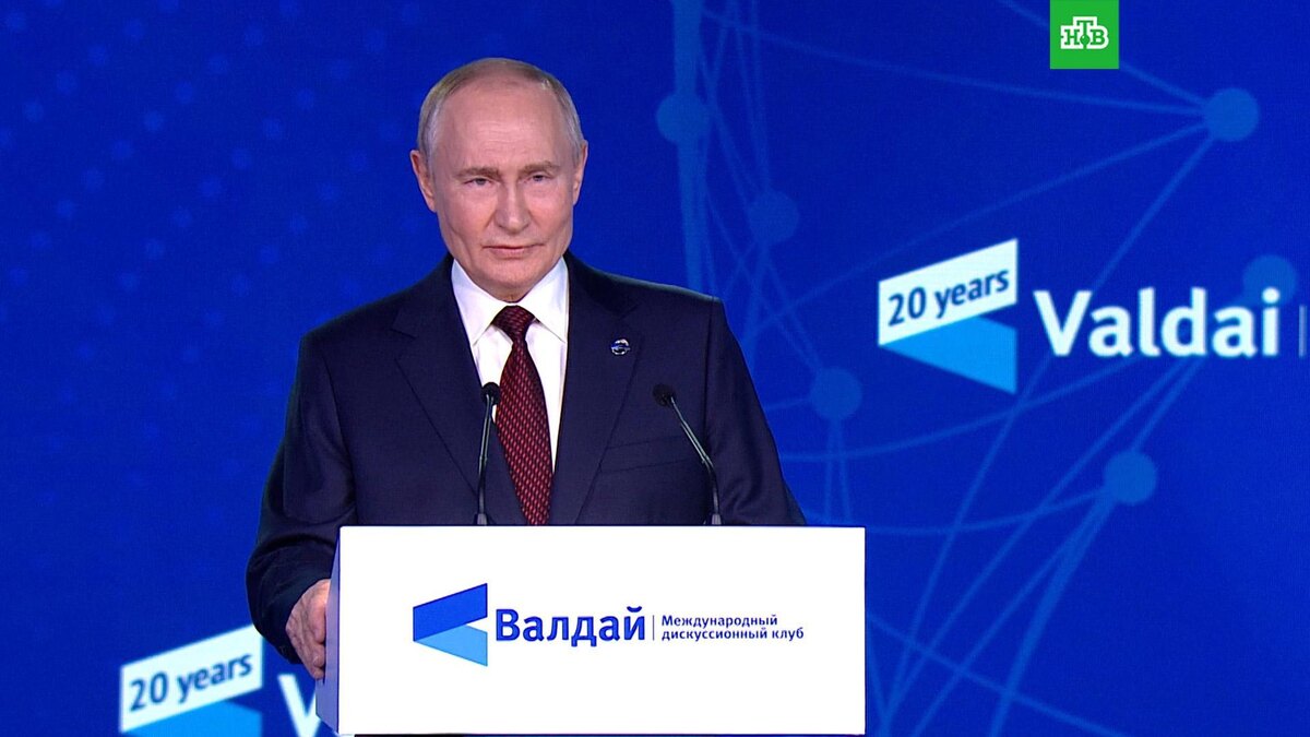 [ Смотреть видео на сайте НТВ ] Владимир Путин произносит речь на заседании международного дискуссионного клуба «Валдай». Российский лидер высказался о текущем мироустройстве. По словам Владимира Путина, геополитическая ситуация сейчас далека от стабильности. И в интересах Запада, чтобы мир как можно скорее вошел в эпоху созидания. «Это в общих интересах, в том числе и прежде всего самого Запада», — сказал президент. Путин подчеркнул, что политика, которую проводят страны ЕС и США, истощает их самих, а также вступает в противоречие с подлинными интересами их народов. Монополия Запада, по словам Путина, находится под угрозой, более того, она наносит вред им самим. Владимир Путин: «Любая монополия, как нам известно из истории, рано или поздно заканчивается. Иллюзий здесь быть не может. Монополия — всегда вредная вещь, даже для самих монополистов». Российский лидер также объяснил, что стало причиной последних мировых конфликтов. Владимир Путин: «Запад превратно и в своих интересах истолко
