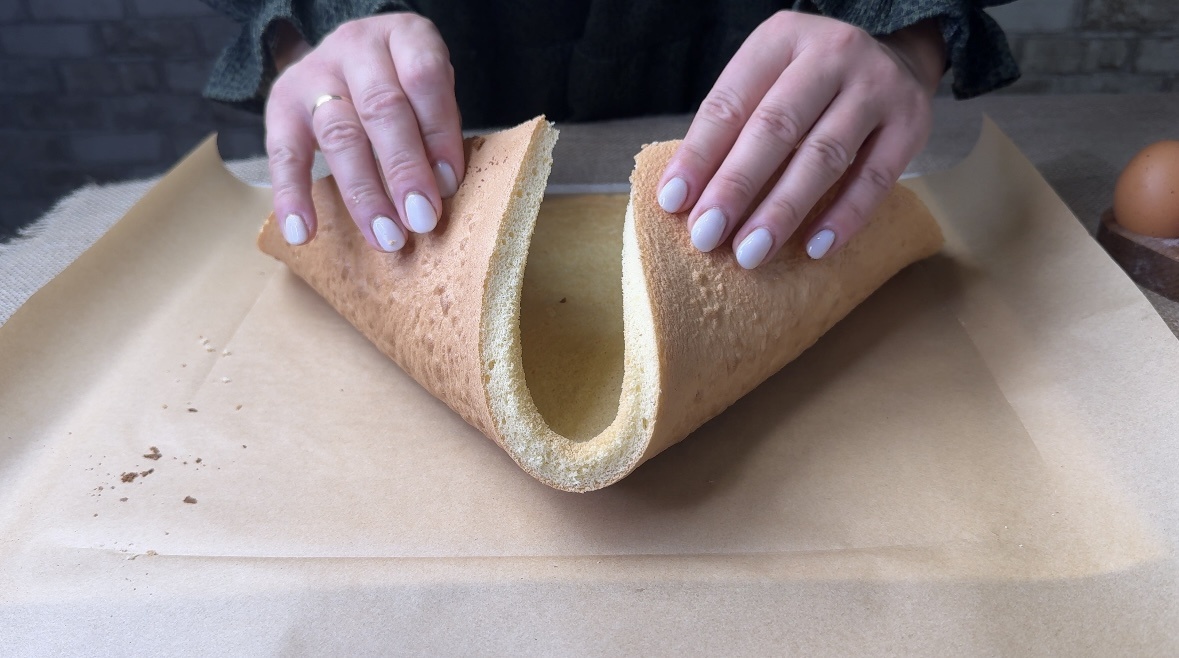 1. Отделяем яичные белки от желтков. К белкам добавляем соль, и взбиваем миксером до мягкой пышной пены. Добавляем ванильный сахар и небольшими порциями всыпаем сахар, продолжаем взбивать до крепких пиков и полного растворения сахара. 2. Яичные желтки, добавляем по одному к взбитым белкам и взбиваем до однородной массы. Добавляем растительное масло, молоко, перемешиваем. 3. Муку смешиваем с разрыхлителем и просеиваем в яичную массу. 4. Размешивать аккуратно, в одном направлении снизу вверх, чтобы не было мучных комочков и сохранить пышную массу взбитых белков. 5. Противень (размер34х41) застелить пергаментной бумагой для выпечки. Вылить тесто и аккуратно разравнять, чтобы слой теста был ровный. Выпекать бисквит при температуре 190 градусов 12-15 минут. Тесто при нажатии пальцем будет пружинить, вверх сухой, значит бисквит готов. Готовый бисквит достать из духовки и дать остыть.
