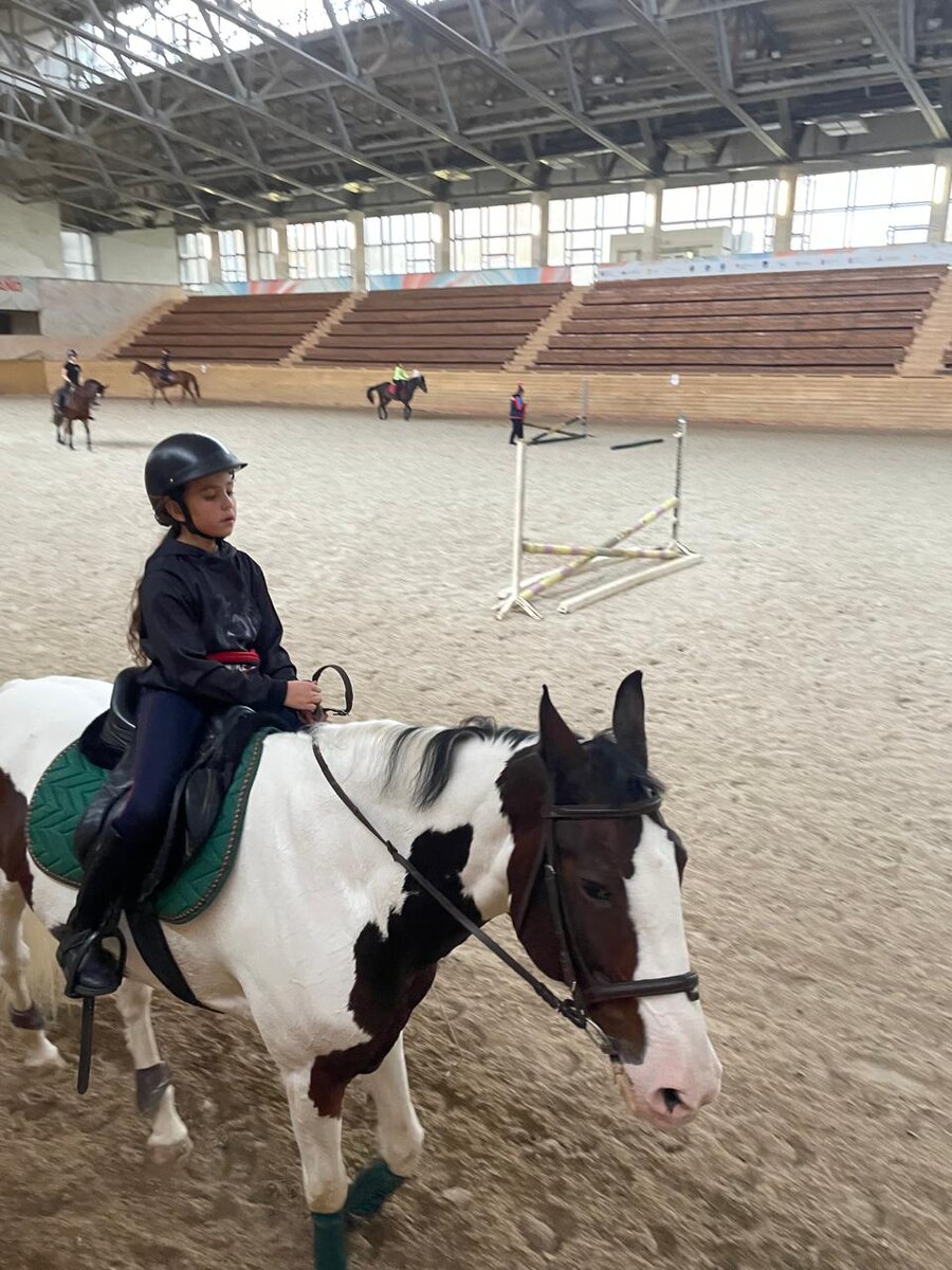 Я занимаюсь верховой ездой и хочу рассказать об этом моём увлечении. Я уже два года езжу верхом, а с сентября занимаюсь в знаменитом КСК (конно-спортивном клубе) ЦСКА. У меня отличная лошадь: она очень красивая и послушная. Ее зовут Мафия, шерсть у нее белая с большими коричневыми пятнами, как у коровы. Такая масть называется пегой. Ей 14 лет, для лошади это преклонный возраст. На тренировке я с начала разминаюсь, а потом, если мы занимаемся в конкурное (вид конного спорта с преодолением препятствий) время, я прыгаю через низкие (примерно 50 см) барьеры. Моего замечательного тренера зовут Дарья. Иногда я тренируюсь с ее учениками. В конном спорте есть много дисциплин. Самые известные из них – это конкурс и выездка. В выездке нужно выполнять разные элементы, которые идут в твоей программе. А в конкурсе – скакать на скорость по маршруту и преодолевать препятствия Соревнования – это важная часть любого спорта, в том числе и конного. Они обычно идут 3-4 дня. На соревнования можно привозит