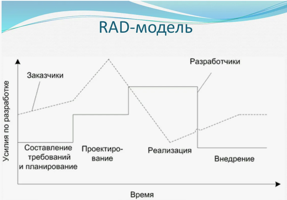 - Гибкость и возможность внесения изменений. В отличие от традиционных моделей, таких как водопадная (Waterfall), модель RAD позволяет гибко реагировать на изменения требований и условий.