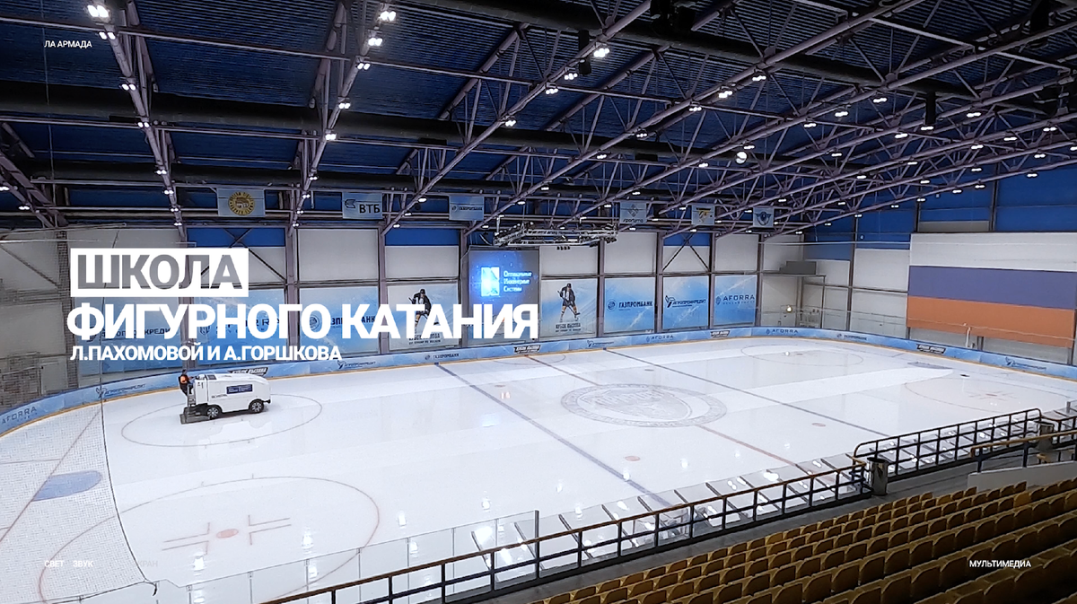 Ледовый дворец «Армада» в подмосковном г. Одинцово, домашняя арена хоккейного клуба "Армада". Для ЛДС Армада мы спроектировали и реализовали спортивное освещение на зрелищной арене и тренировочном поле, всего установлено 140 спортивных светильников. Для небольшой тренировочной арены мы обеспечили освещённость в 500 ЛК – это оптимальный уровень для проведения комфортных тренировок, света достаточно, при этом электроэнергия не расходуется в таком количестве, как при освещении для игр. Для зрелищных же арен недостаточно 500 ЛК, необходим свет, уровня – от 750 ЛК. В ледовом дворце Армада уровень освещенности основной арены – 1000 ЛК. При отработке программ выступлений фигуристы ориентируются на музыкальную композицию, для них важно четкое и объемное звучание во время тренировок. И, так как на арене тренируются 2 школы фигурного катания, кроме освещения, мы поставили профессиональную систему звука, которая охватывает ледовое поле и все трибуны. Также мы снабдили арену экраном, на котором мо