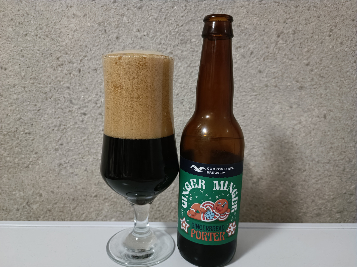 Сегодня у меня в бокале новинка от Горьковской пивоварни под названием Ginger Minger. Информация из антапт от авторов: Ginger Minger – эту ироничную фразу хотя бы раз в жизни слышал, наверное, каждый обладатель пышной рыжеволосой шевелюры, сталкивавшийся с детскими дразнилками. Но почему же люди с рыжими волосами ассоциируются с имбирем (ginger)? Ответ кроется в их характере – порой упрямом и вспыльчивом, для описания которого использовали слово «ginger», поскольку пряность имбиря придавала еде пикантный и острый вкус. Яркий и заводной характер получил и тягучий и сладкий портер, сваренный с добавлением имбирных пряников, традиционного зимнего лакомства всех сладкоежек. Звучит вкусно. Давайте пробовать. Алк. 6.5 Бутылка объёмом 0.33 литра обошлась мне в 130 р. Куплено в магазине Магнит. Пиво чёрного, непрозрачного цвета с пышной мелкозернистой стойкой пенной шапкой. В аромате имбирные печеньки. На вкус лёгкий, неплотный портер с лёгким имбирным и пряничным вкусом. Немного шокола