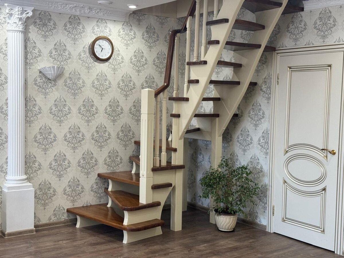 Деревянные лестницы — это не только функциональная деталь интерьера, но и стильный элемент дизайна, способный придать помещению уют и уникальный характер. Дерево, как натуральный материал, сочетает в себе долговечность, эстетическую привлекательность и экологическую безопасность, что делает его востребованным в оформлении частных домов и квартир. В этой статье рассмотрим основные виды деревянных лестниц, их особенности и преимущества. Дерево — это классический материал, обладающий множеством достоинств. Среди основных преимуществ деревянных лестниц можно выделить: На нашем сайте вы можете ознакомиться с другими работами деревянных лестниц, которыми уже пользуются клиенты. Существует несколько основных видов деревянных лестниц, каждый из которых имеет свои особенности и подходит для разных интерьеров и условий эксплуатации. Рассмотрим основные виды. Маршевая лестница — это наиболее распространенный вид, отличающийся простотой конструкции и удобством использования. Она состоит из одног