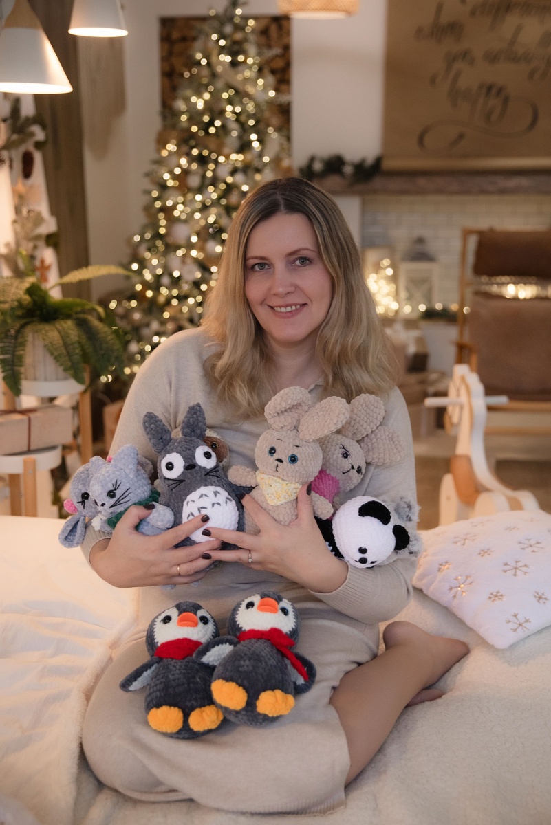 Актуально на 07.11.2024 . в связи с тем, что я активно готовлюсь к новогодним ярмаркам игрушек в наличии уже скопилось не мало и я решила показать вам немного того что лежит и ждет своего часа. Все игрушки ростом примерно 20-22см без учета ушей. Длинноухие зайцы, в прошлый раз было очень популярны на ярмарках. Собачки с ушками из букле в разных образах девочки и мальчики. Милашки пингвинята Слоники в платьях и с бантиками Зайчики с ушками стоящими вверх Ленивец, на мой вкус очень милый Совенок с меховыми крыльями. Все игрушки связаны из плюшевой гипоаллергенной пряжи Кто вам нравится больше остальных? P.s. Если вам понравилось и вы хотите приобрести, то жду вас у себя в группе в ВК