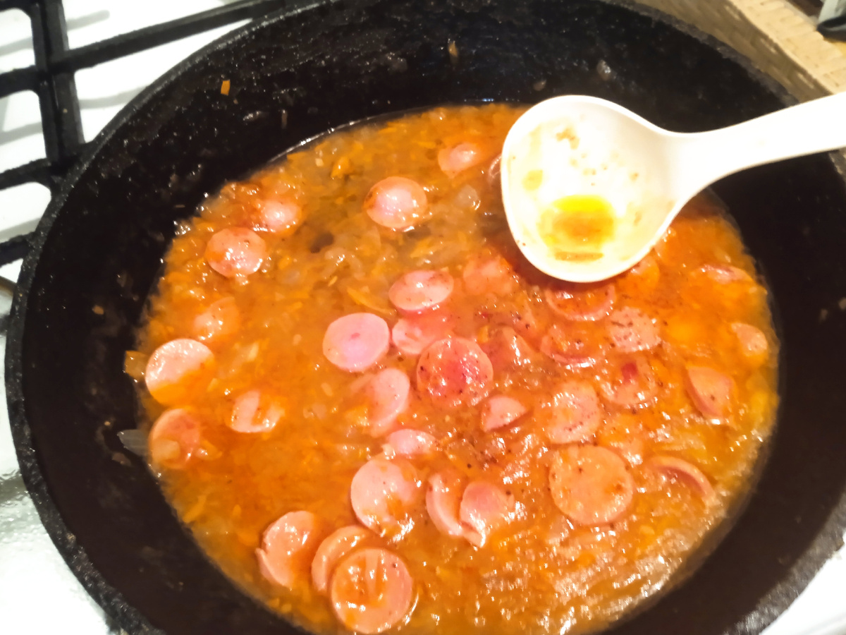 Это подлива с сосисками и томатной пастой к картофельному пюре подходит идеально