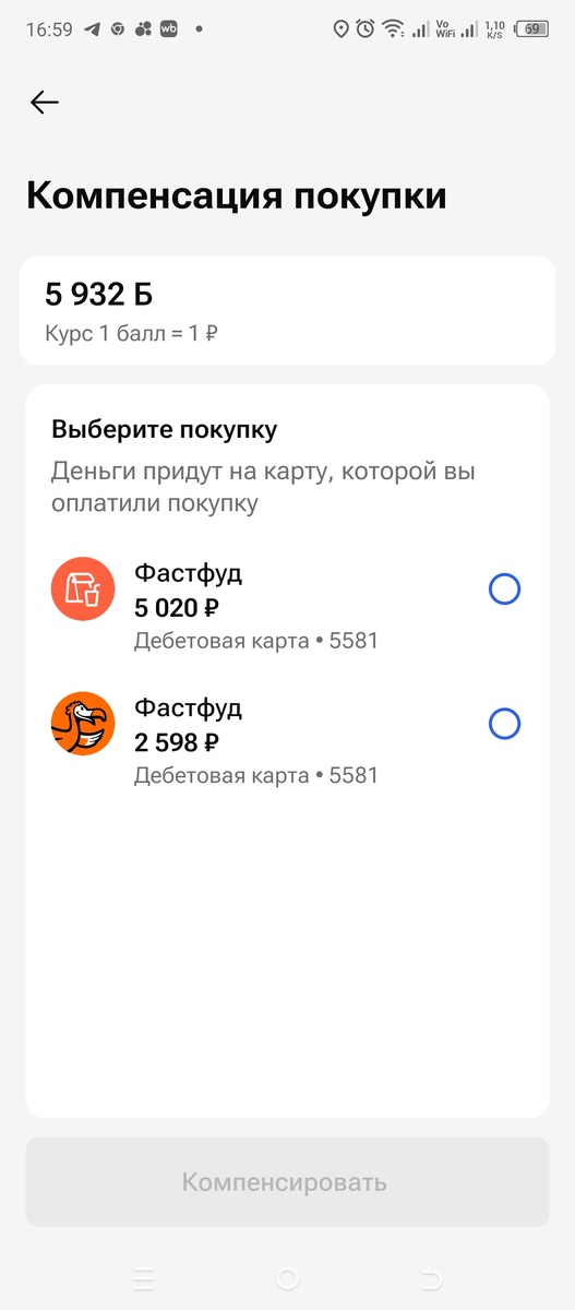 Что то навалилось. Какое все таки зло мамские чатики с толпой обезумевших женщин. Высосали всю энергию, забрали кучу времени. Но не о них речь. Сегодня о приятном, о деньгах! Днем прилетел приятный бонус от банка в рамках акции "На самое важное". Раньше у меня не было покупок, которые можно было бы компенсировать по курсу 1:1, но в этот раз, оказывается , появились: На балансе 5 932 балла и если их менять на рубли, то потеряю 1 186 балла. Если компенсирую покупку, то на балансе останется 912 балла, которые сейчас не смогу конвертировать в рубли, потому что не хватает почти 600 баллов. Частично конвертировать покупку тоже не хотелось, тогда решила посоветоваться с мужем. А муж сказал чтобы не парила🙄 Думала, думала и все таки компенсировала покупку в полном объёме. Тут же банк зачислил на баланс 5 020 рублей, которые благополучно перевела на накопительный счёт с ежедневным начислением процентов. Пошла смотреть сколько баллов осталось, а банк еще начислил кешбек ща покупки, поэтому на