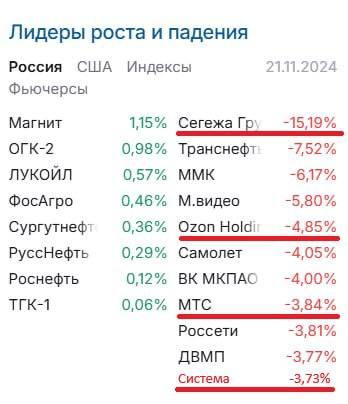 Что такое "не везет" и как с этим бороться 🤝Присоединяйся к сообществу Кот.Финанс: мы делаем обзоры компаний, рынков, недвижимости -- Акции Сегежи протрезвели. Акционеры поняли, что даже вливание 101 млрд не делает компанию дешевой и интересной. В тоже время, бонды Сегежи чувствовали себя уверено: 🔼хорошо переоценился CNY выпуск 🔻фиксы в RUB скорректировались после вчерашнего оптимизма Мы продолжим покупать CNY-выпуск, т.к. при равном кредитном риске их доходность должна быть меньше рублевых, но не забываем о диверсификации (!) А в целом, день запомнился "Системным падением". В лидерах падения ключевые активы АФК и сам холдинг: 🔻Сегежа (-15%) 🔻OZON (-5%) 🔻МТС (-4%) 🔻Система (-4%) Если абстрагироваться от радости спасения (Сегежи) наших бондов, то не очень понятны источники средств Системы: 🔹Сегежа - проблемный актив и требует денег 🔹OZON и сам нуждается в развитии, дивидендами не пахнет 🔹МТС чахнет под давлением процентных расходов и дивиденды точно (!) должны снизиться Да и
