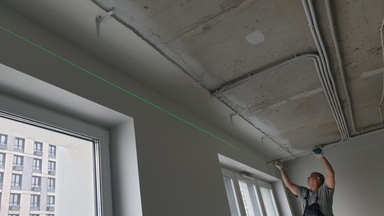 Каким должен быть модный и современный потолок? Какой натяжной потолок выбрать среди такого многообразия? Это постоянный вопрос от заказчика и достаточно актуальный. Ведь грамотно оформленный потолок создает ощущение целостности интерьера, придает ему индивидуальность и законченность. Разнообразие вариантов и конфигураций потолков поражает. Хотите ли вы простой, классический, белый или цветной, акцентный, креативный натяжной потолок, решать только вам. Главное, чтобы он был единым целым со стилем и цветовой гаммой интерьера. Выполняя монтаж натяжного потолка в двухкомнатной квартире в жилом комплексе, мы использовали матовое полотно и светодиодную подсветку. Несмотря на то, что это простой белый потолок, он выглядит стильно, сочетаясь с белым дверным полотном и стенами. Натяжной потолок — самый популярный вариант на сегодняшний день. Это полотно из пленки или ткани, которое натягивается и фиксируется в специальном крепежном профиле, установленном по периметру помещения, на расстоянии н