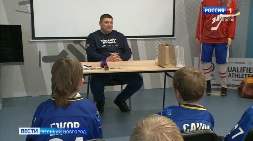 В Великом Новгороде заслуженный мастер спорта СССР, хоккеист Андрей Коваленко встретился с начинающими спортсменами