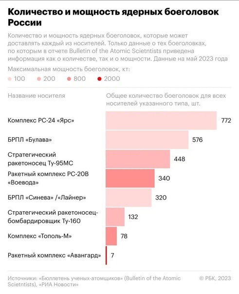 В свете последних событий полезно будет поговорить о том, какими именно ядерными носителями и ядерными боеголовками располагает Россия. Информация взята отсюда.