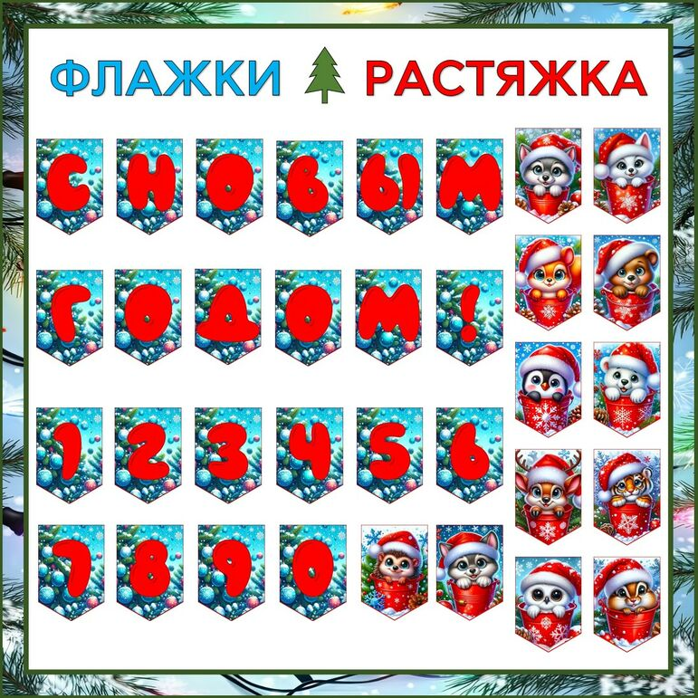 - 12 флажков с новогодними картинками.