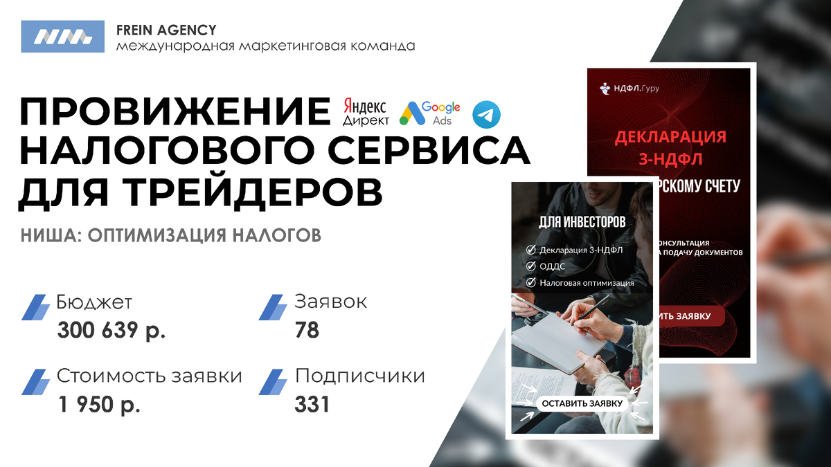 Тоже хотите не только получать трафик, но и видеть результат в виде реальных клиентов? Система комплексного подхода и команда профессионалов, как FREIN AGENCY, могут стать вашим надежным партнером в мире digital-рекламы.