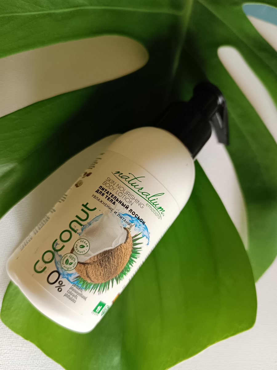 Почти зима... но нас не напугает непогода, особенно нашу кожу, ведь она увлажнена, напитана и под защитой❤️ ⭐С удовольствием поделюсь мнением о питательном лосьоне для тела от Naturalium! Продукт под названием 🥥🥥🥥Naturalium Emotions Coconut Skin Nourishing Body Lotion 🥥🥥🥥 Питательный лосьон для тела с ароматом кокоса 🥥 Сразу понятно, что речь пойдет о чем-то тропическом и очень ароматном. Ну что ж, давайте попробуем! 🥥🥥🥥Внешний вид🥥🥥🥥 ⭐Флакон выглядит просто, но со вкусом – ничего лишнего, просто белая бутылочка с яркими зелеными акцентами. На этикетке изображен кокос, который сразу вызывает ассоциации с пляжем, солнцем и отдыхом. Такой дизайн приятно держать в руках и ставить на полку в ванной комнате. А помповый дозатор порадует лёгким извлечением лосьона. 🥥🥥🥥Аромат🥥🥥🥥 ⭐Запах... ммм... Это прям как будто ты оказался на Бали! Кокосовый аромат такой насыщенный и сладкий, что хочется намазаться этим лосьоном с головы до ног. Но будьте осторожны, чтобы не пер