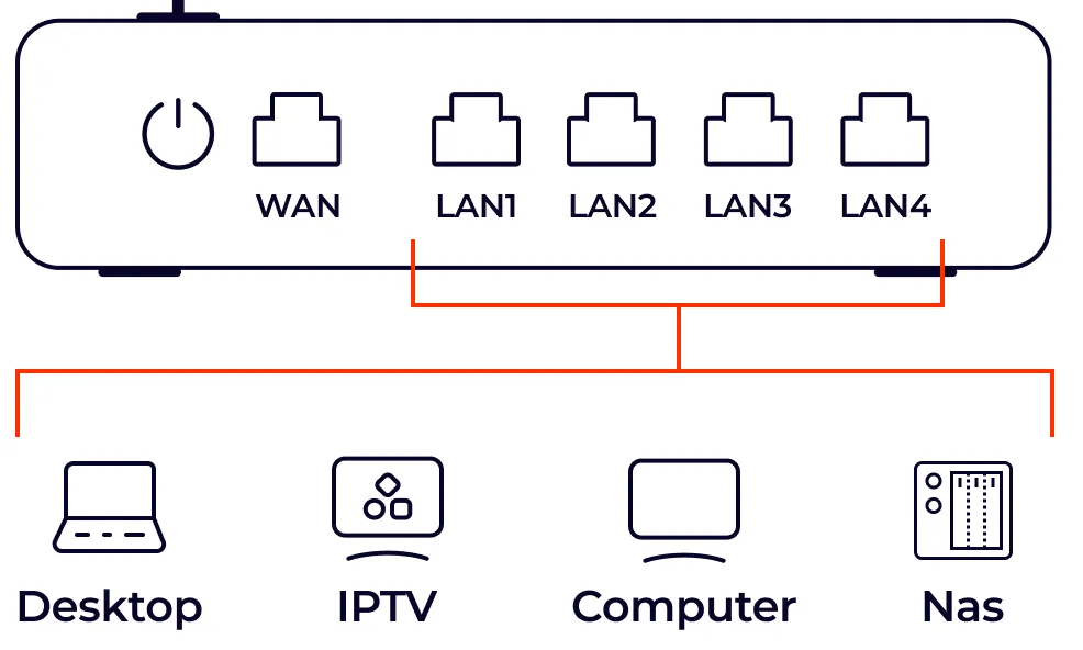 - Проводные маршрутизаторы. Проводные маршрутизаторы используют Ethernet или оптоволоконные кабели для подключения устройств к Интернету, локальным или внешним сетям. Они оснащены портами WAN и несколькими портами LAN для подключения серверов, компьютеров и сетевых коммутаторов, расширяя локальную сеть.