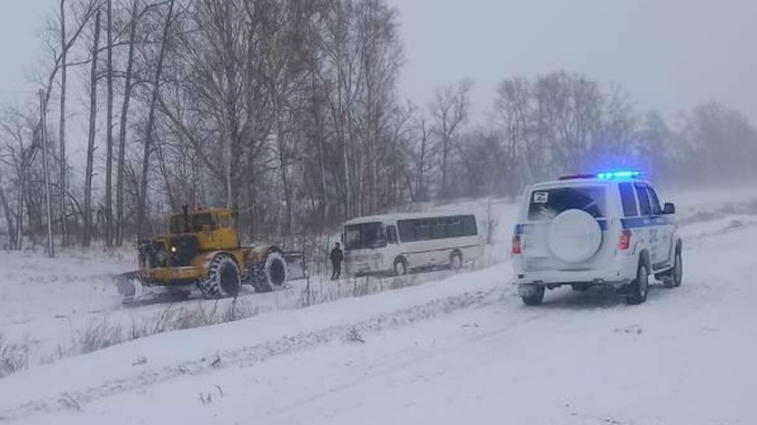 ДТП произошло накануне на 9-м километре трассы К-11 Бийск – Карабинка – граница Республики Алтай. Помимо автобуса, в сугроб также угодил и КамАЗ.