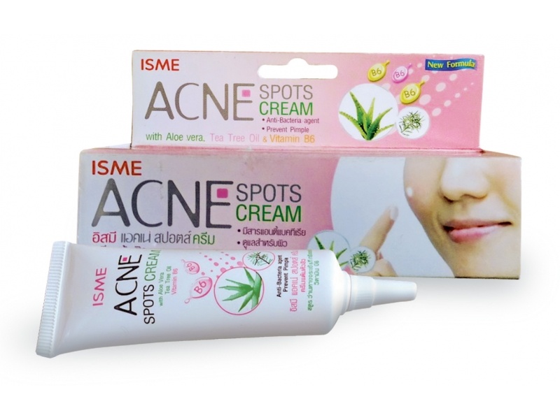 Крем от Акне (прыщей). Содержит экстракты лекарственных растений, предотвращающий появление акне. Содержит мощный антисептик триклозан. В составе крема алоэ вера, это природный антисептик и противовоспалительный и увлажняющий препарат. Масло чайного дерева и витамин В6. Предотвращает, лечит и ухаживает! Лечебный анти-акне крем Isme Acne Spots быстро убирает прыщики за короткое время, предотвращает развитие только появляющихся прыщиков, быстро подсушивает и заживляет места воспаления на коже. При нанесении на зарождающийся прыщик снимает воспаление и предотвращает развитие прыщика.