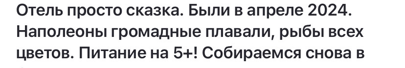 В заключение, отель Baron Resort 5* советую тем, кто любит качественное обслуживание. Кто любит Красное море с муренами и вкусно позавтракать-поужинать. Тем, кто любит порядочное отношение к русским людям.